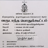 வல்வெட்டித்துறை நெடியகாடு திருச்சிற்றம்பல பிள்ளையார் ஆலய வருடாந்த பொதுக்கூட்டம் வரும் 30 ஆம் திகதி ஞாயிற்றுக்கிழமை அன்று காலை 10.00 மணிக்கு ஆலய முன்றலில் நடைபெறவுள்ளது.