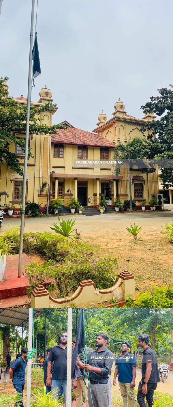 இதன் பொழுது பல்கலைக்கழகத்தின் பிரதான கொடிக்கம்பத்தில் மாணவர்களால் கறுப்பு கொடியேற்றப்பட்டு  அரைக்கம்பத்தில் பறக்கவிடப்பட்டது.